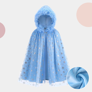儿童斗篷秋冬蓝色冰雪奇缘女童爱莎公主披风加绒连帽外套COS表演