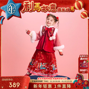 唐装 年衣童装 儿童马面裙中式 女童冬季 汉服外套拜年服 加绒汉服套装