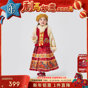 新中式 巴拉巴拉童装 冬装 女童拜年服2025新款 两件套红色潮 儿童套装
