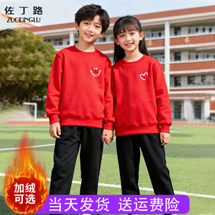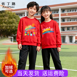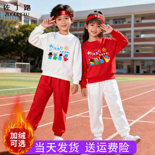 • 旦儿童演出服 加绒幼儿园小学生运动会班服元 红色卫衣白色裤 子套装