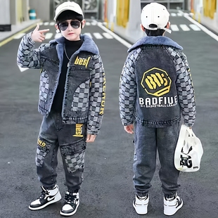 套装 帅气男孩童装 外套裤 风格 子组合儿童加绒加厚保暖时尚 男童冬季