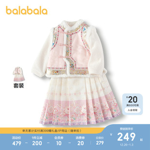 时尚 巴拉巴拉女童马面裙套装 秋冬国风汉服两件套精致提花小灯笼袖