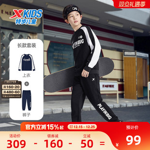儿童套头运动套装 拼接加绒长袖 中大童 男童2025年新款 特步儿童套装