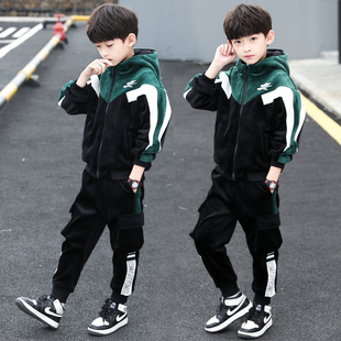 男童冬装 男孩洋气金丝绒加厚韩版 套装 中大童秋冬季 2025新款 儿童装