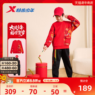 马年卫衣儿童侧边拉链长裤 福燈贺岁 加绒套装 男童新年款 特步童装