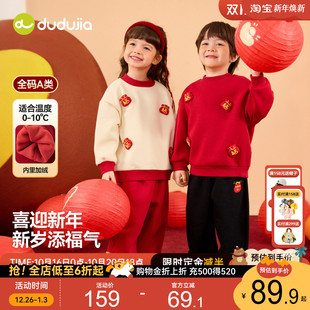 女孩喜庆过年衣服新年儿童加绒裤 2026新款 子潮 套装 迪士尼女童冬装