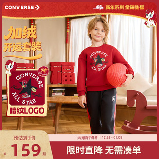 特步童装 男大童加绒红色卫衣圆领套装 儿童新年款 裤 工装 福燈贺岁