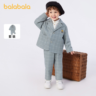 巴拉巴拉男童长袖 儿童春秋小童宝宝千鸟格两件套洋气休闲 套装
