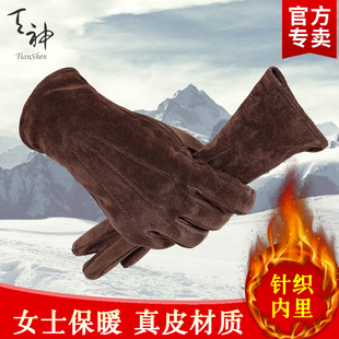 皮手套秋冬女式 电瓶车防风防寒修手骑行加绒真皮手套 保暖加厚韩版