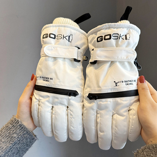 冬季 滑雪手套女可触屏加绒加厚保暖防寒防风防水摩托车骑行手套潮