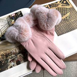 真皮手套女冬季 保暖柔美獭兔毛口绵羊皮手套修手防风 加绒加厚韩版