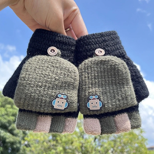 秋冬款 儿童手套翻盖半指男女孩可爱保暖针织加厚学生写字防寒指套