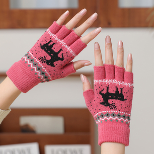 半指手套女士冬露指可触屏加厚学生写字成人工作防寒保暖百搭毛线