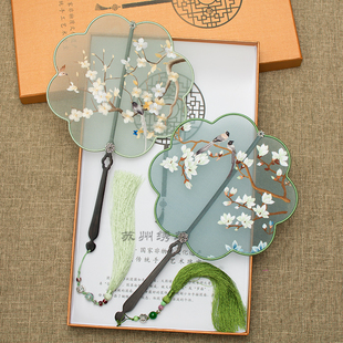 苏州刺绣扇子苏绣团扇手工双面绣宫扇中国风古装 汉服舞蹈扇子礼品