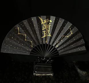 中式 镀黑精钢古风原创扇子铁扇镂空防身功夫太极纯金属不锈钢折扇