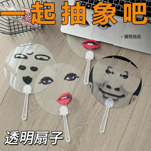 新款 圆形扇 夏日龙图扇子搞怪龙图表情包扇子送闺蜜拍照道具爆款