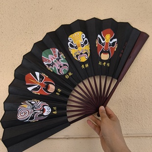 中国新款 扇子10寸折扇京剧C扇36脸5脸百脸谱黑绢黄绢底