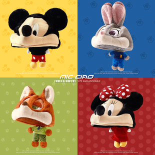迪士尼朱迪尼克帽子女冬季 保暖毛绒帽显脸小米奇米妮玩偶套头帽男