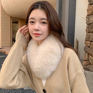 网红同款 百搭皮草围脖真毛领子 双面毛狐狸毛围巾女獭兔毛内衬韩版
