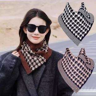 三角围巾围脖时尚 千鸟格脖套三角巾头围脖保暖防风防寒护颈套