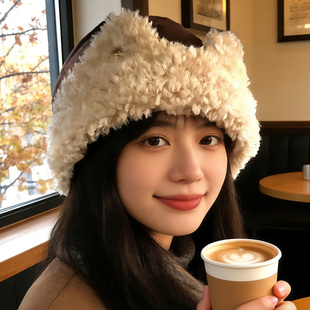 蕉内502GO女士帽子保暖毛绒仿兔绒显脸小百搭圆顶可爱渔夫帽秋冬