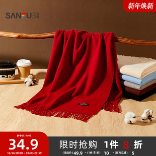三福围巾流苏韩系高级感红色加大围脖披肩两用外搭女冬季 2025新款