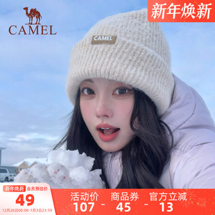 骆驼麻薯帽针织帽女款 冬堆堆帽子方圆脸显脸小保暖毛线帽 2025新款