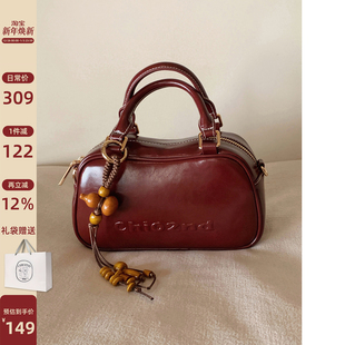 • 15MINS红色包包2025新款 百搭保龄球包手提斜挎包通勤新年女包 时尚