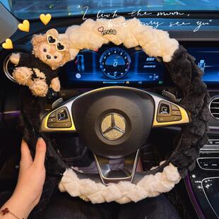 饰 通用车用品装 汽车方向盘套冬季 卡通毛绒保暖车把套防滑可爱四季