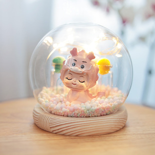 蛇龙兔虎婴儿胎发乳牙脐带收藏盒带灯摆件胎毛纪念品礼物玻璃原木