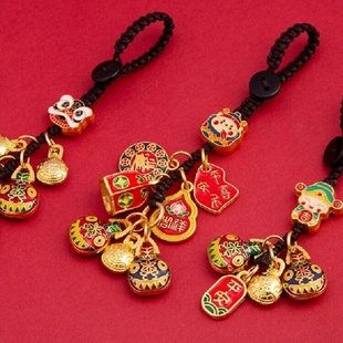 本命年钥匙扣珐琅吞金兽钥匙扣国潮复古沙金貔貅汽车钥匙挂件编织
