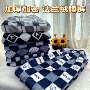 可外穿单件裤 男士 法兰绒加厚休闲家居睡裤 夹棉加厚单件睡裤 子 冬季