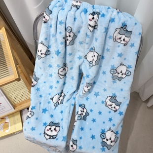 • 子 女可外穿法兰绒居家裤 秋冬小八卡通加厚睡裤 高腰保暖休闲家居裤