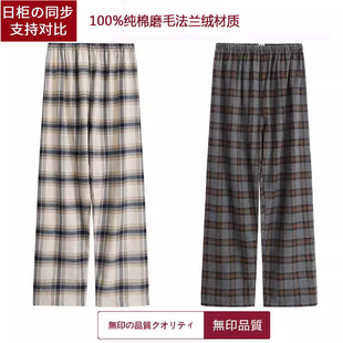 休闲长裤 男女纯棉磨毛秋冬加厚家居裤 无印全棉法兰绒睡裤 专柜同款