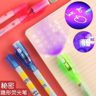隐形文字笔学生创意标记笔荧光笔LED紫外线验钞笔魔术笔礼品玩具Q