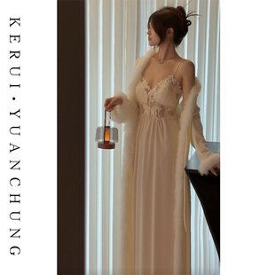 长裙长袍睡裙女显瘦高级保暖 秋冬毛毛睡袍法式 初雪之森