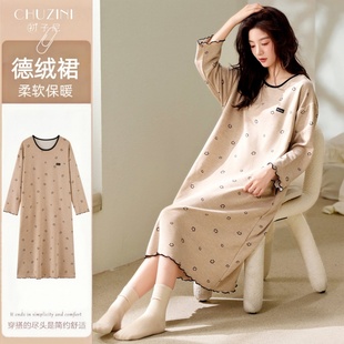保暖舒适羊绒蚕丝柔软家居服 连衣裙2025新款 睡裙女秋冬季 德绒长袖