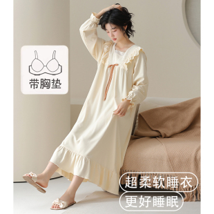 • 2025新款 长袖 公主风家居服长裙 带胸垫睡衣春秋款 猫人纯棉睡裙女款