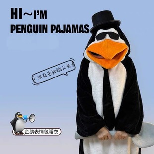 恶俗企鹅睡衣连体抽象家居服学生宿舍保暖睡袍可外穿 高雅人士