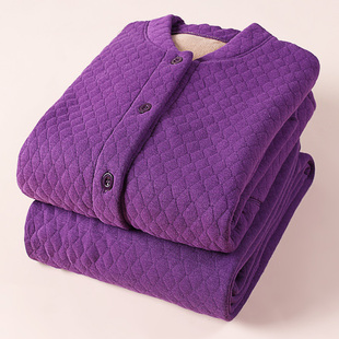 纯棉女士加绒加厚开衫 冬季 上衣 奶奶秋衣秋裤 中老年人保暖内衣套装
