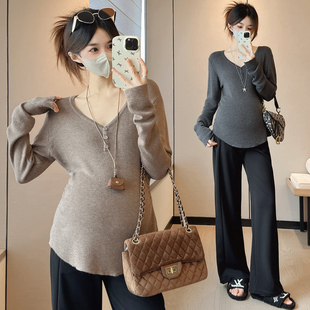 孕妇V领打底上衣春秋外穿时尚 百搭套头打底上衣 好质量孕妇秋冬季