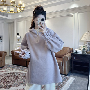 孕妇秋冬装 女 双面绒加厚卫衣连帽半拉链泰迪绒宽松显瘦上衣打底衫