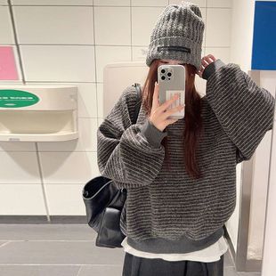 套头卫衣秋装 孕妇上衣女2025新款 慵懒风宽松圆领显瘦撞色条纹长袖
