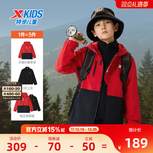 三合一风衣男童户外防风保暖摇粒绒上衣 新款 特步童装 儿童外套冬季