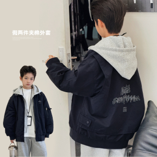 假两件儿童夹克衫 中大童加厚上衣韩版 潮 新款 男童夹棉外套2025冬装
