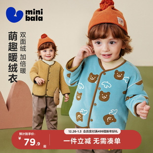 迷你巴拉巴拉男童女童毛绒外套冬季 宝宝加厚舒适双面保暖夹克 新款