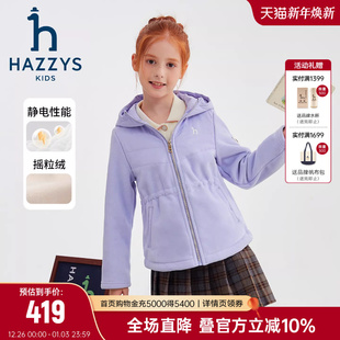 hazzys哈吉斯童装 上衣 女童外套2025秋新中大童舒适摇粒绒长袖