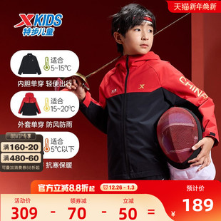 新款 2025冬季 防风运动服风衣 儿童外套男童三合一加绒冬装 特步童装