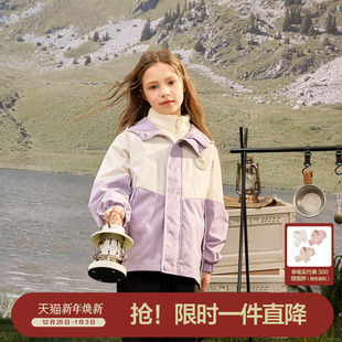 骆驼女童冲锋衣三合一可拆卸2025新款 防风防水男童登山服儿童外套