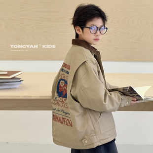 巴恩风男童外套夹棉2025冬装 自制中大童加厚上衣保暖儿童夹克 新款